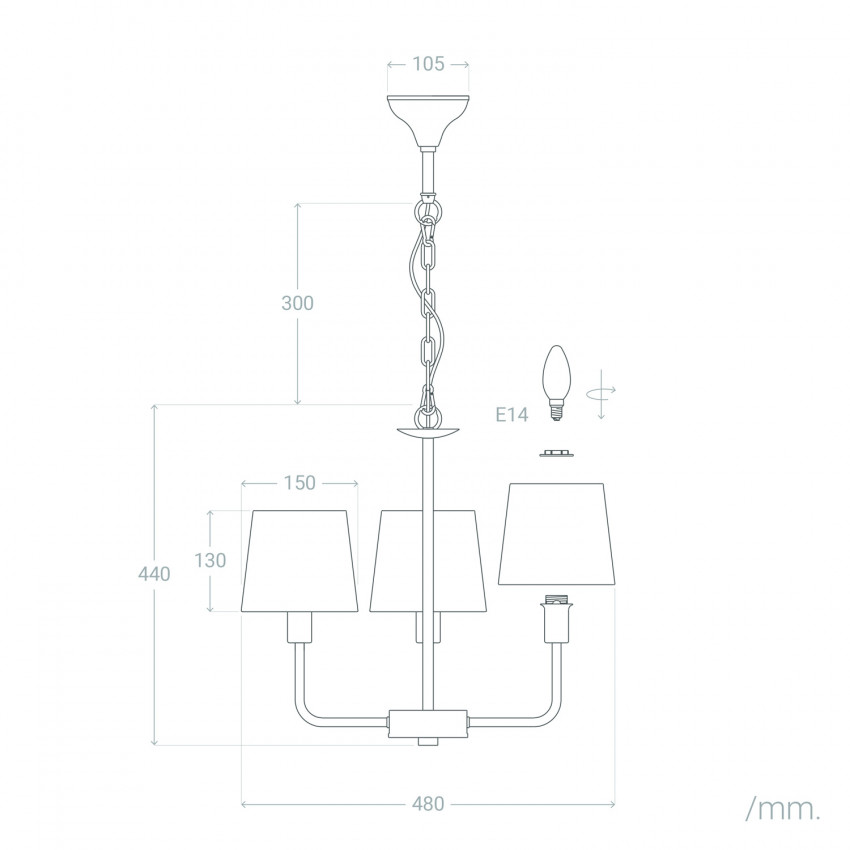 Nécessite 3 Ampoules E14 NON INCLUSE dans le produit, que vous trouverez ici.